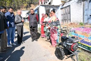 भगरतौला ग्रामीणों ने कृषि मंत्री को अवगत कराया कि जिला योजना एवं उद्यान विभाग द्वारा स्थापित 100 से अधिक पॉलीहाउस में क्लस्टर आधारित कृषि की जा रही है, जिसमें आलू, शिमला मिर्च, गोभी, मैथी, धनिया, मिर्च आदि सब्जियों की खेती हो रही है। इससे स्थानीय किसानों की आय में बढ़ोतरी हुई है और आजीविका मजबूत हुई है। मंत्री जोशी ने किसानों के इस प्रयास की सराहना की। इसके साथ ही उन्होंने सैम देवता समूह की लखपति दीदियों से भी वार्ता की और उनके स्व–रोजगार एवं महिला सशक्तिकरण के प्रयासों को प्रशंसनीय बताया।