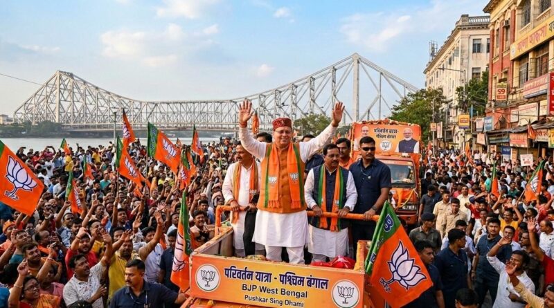 चुनाव हुंकार: पश्चिम बंगाल के रण में उतरे मुख्यमंत्री धामी, परिवर्तन यात्रा जनसभा में भरा जोश