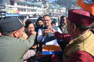 मसूरी : कैबिनेट मंत्री गणेश जोशी ने मसूरी पहुँचकर गांधी चौक में पार्टी पदाधिकारियों और स्थानीय नागरिकों के साथ मिठाई बांटकर तथा आतिशबाजी कर भाजपा की विजय का जोरदार जश्न मनाया।
