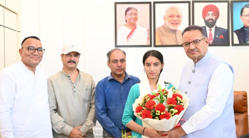 कैबिनेट मंत्री गणेश जोशी ने हाईस्कूल परीक्षा में प्रदेश में 15वीं रैंक लाने वाली साक्षी को किया सम्मानित