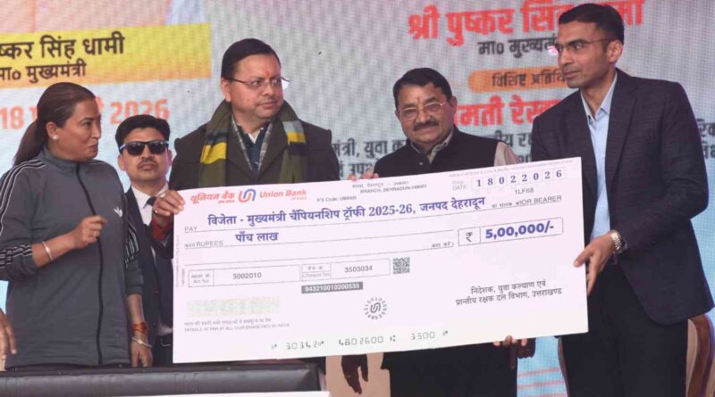 मुख्यमंत्री धामी और खेल मंत्री रेखा आर्या ने विजेता टीम को ट्रॉफी व 5 लाख का चेक देकर किया सम्मानित