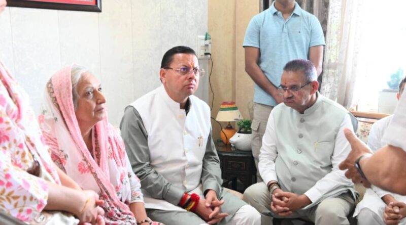 देहरादून : मुख्यमंत्री पुष्कर सिंह धामी ने सेवानिवृत्त ब्रिगेडियर मुकेश जोशी के निधन पर उनके जोहड़ी, देहरादून स्थित आवास पहुंचकर