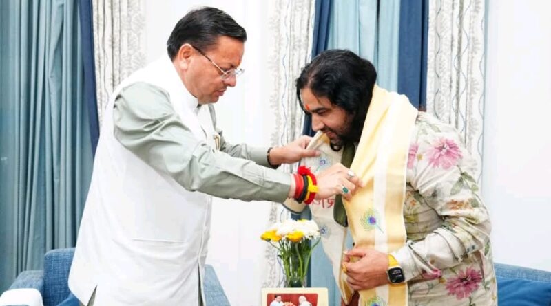 मुख्यमंत्री धामी से कथा वाचक देवकीनंदन ठाकुर जी महाराज ने की शिष्टाचार भेंट, चारधाम यात्रा व्यवस्थाओं के लिए की सराहना