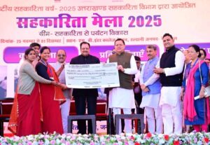 हल्द्वानी : मुख्यमंत्री पुष्कर सिंह धामी ने हल्द्वानी (जनपद नैनीताल) में अंतरराष्ट्रीय सहकारिता वर्ष–2025 के उपलक्ष्य में आयोजित सहकारिता मेले में प्रतिभाग किया। इस अवसर पर उन्होंने पशुपालन एवं सब्जी उत्पादन में कार्यरत स्वयं सहायता समूह की महिलाओं को मध्यकालीन दीनदयाल उपाध्याय सहकारिता कल्याण योजना के तहत ₹16.97 करोड़ तथा NRLM स्वयं सहायता समूहों के अंतर्गत ₹75.50 लाख की वित्तीय सहायता प्रदान की।