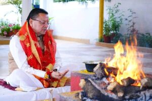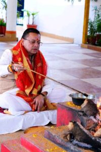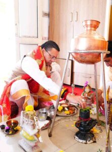 देहरादून : मुख्यमंत्री पुष्कर सिंह धामी ने शासकीय आवास पर हिंदू नव संवत्सर एवं पावन चैत्र नवरात्रि के प्रथम दिवस के शुभ अवसर पर विधि-विधान के साथ हवन-पूजन किया। इस शुभ अवसर पर मुख्यमंत्री ने भगवान भोलेनाथ का जलाभिषेक कर आशीर्वाद प्राप्त किया।