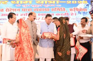 ऋषिकेश : मुख्यमंत्री पुष्कर सिंह धामी ने ऋषिकेश में संयुक्त रोटेशन यात्रा व्यवस्था समिति द्वारा आयोजित चारधाम यात्रा-2026 के शुभारम्भ कार्यक्रम में प्रतिभाग किया। इस दौरान मुख्यमंत्री ने चार धाम जाने वाली बसों को हरी झंडी दिखाकर रवाना किया। उन्होंने श्रद्धालुओं के लिए स्थापित निशुल्क स्वास्थ्य शिविर का भी निरीक्षण किया।