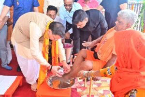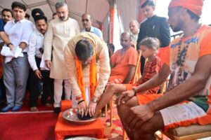 हरिद्वार में गंगा घाट पर कांवड़ियों के चरण धोकर मुख्यमंत्री धामी ने किया सम्मान, 251 फीट ऊंचे भगवा ध्वज की घोषणा