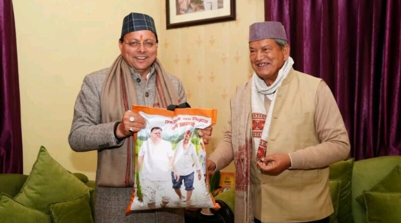 मुख्यमंत्री धामी ने पूर्व मुख्यमंत्री हरीश रावत से की मुलाकात, अपने खेत में उगाए चावल किए भेंट