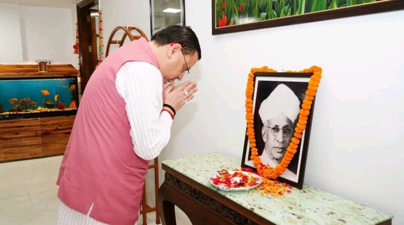 मुख्यमंत्री धामी ने पूर्व राष्ट्रपति भारत रत्न डॉ. सर्वपल्ली राधाकृष्णन को पुष्प अर्पित कर दी श्रद्धांजलि