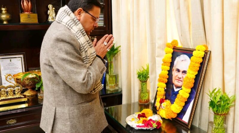 पूर्व प्रधानमंत्री , भारत रत्न अटल बिहारी वाजपेयी की जयंती पर मुख्यमंत्री धामी ने श्रद्धासुमन अर्पित कर किया नमन
