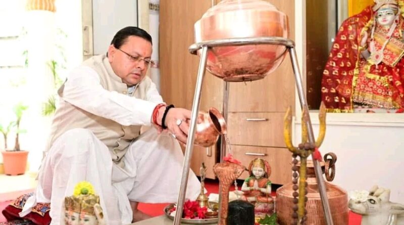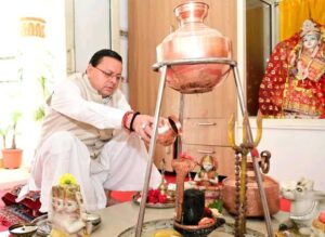 देहरादून: मुख्यमंत्री पुष्कर सिंह धामी ने शारदीय नवरात्रि के शुभारंभ पर सम्पूर्ण विधि-विधान के साथ शासकीय आवास पर माँ आदिशक्ति भगवती की पूजा-अर्चना की।
