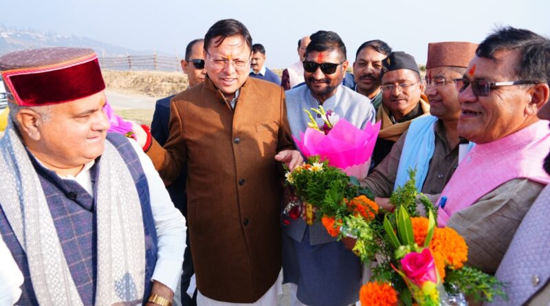 मुख्यमंत्री धामी का भराड़ीसैंण (गैरसैंण) पहुंचने पर जनप्रतिनिधियों ने किया स्वागत