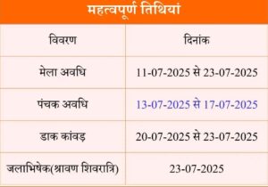 मुख्य सचिव ने समय रहते संबंधित कार्यदायी संस्थाओं की बैठक करते हुए उनको आवश्यक दिशा-निर्देश जारी करने को कहा। उन्होंने सिंचाई विभाग को विभिन्न स्नान घाटों और पुलों पर बेहतर साफ-सफाई और जरूरी सुरक्षा व्यवस्था सुनिश्चित करने के निर्देश दिए। कांवड़ मेला की अवधि 11 जुलाई से 23 जुलाई तक रहेगी। पंचक अवधि 13 से 17 जुलाई तक, डाक कांवड़ 20 से 23 जुलाई तक तथा जलाभिषेक (श्रावण शिवरात्रि) 23 जुलाई को होगा।
