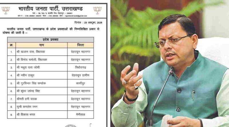 मिशन 2027 : उत्तराखंड भाजपा ने जारी की प्रवक्ताओं की लिस्ट, दो वरिष्ठ विधायक खजान दास, विनोद चमोली को मिली जिम्मेदारी