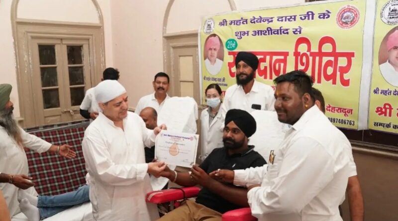 श्री गुरु राम राय जी महाराज को समर्पित स्वैच्छिक रक्तदान शिविर में संगत ने 105 यूनिट रक्तदान किया। श्री गुरु राम राय जी महाराज के महानिर्वाण पर्व पर महाकाल सेवा समिति द्वारा श्री महंत इन्दिरेश अस्पताल ब्लड बैंक के सहयोग से रक्तदान शिविर का आयोजन किया गया। रक्तदान शिविर में परम पूज्य श्रीमहंत देवेन्द्र दास जी महाराज ने दीप प्रज्जवलित कर शिविर का शुभारंभ किया। श्री महाराज जी ने रक्तदाताओं को स्मृति चिन्ह देकर सम्मानित किया और सभी को आर्शीवाद दिया। उन्होंने महाकाल सेवा समिति द्वारा किये जा रहे रचनात्मक और सामाजिक कार्यों की भूरि-भूरि प्रशंसा की। शिविर में पुरूषों एवं महिलाओं ने उत्साहपूर्वक रक्तदान किया। इस दौरान प्रख्यात भागवताचार्य सुभाष जोशी, पृथ्वीनाथ सेवादल से संजय गर्ग, नवीन गुप्ता, विवेक मोहन श्रीवास्तव व महाकाल सेवा समिति के रौशन राणा, हेमराज अरोड़ा, विनय प्रजापति, आयुष जैन, गौरव जैन, बालकिशन शर्मा, संजीव गुप्ता, नितिन अग्रवाल, राहुल माटा, विक्रम चौधरी, कृतिका राणा, अनुष्का राणा आदि उपस्थित रहे। महंत इन्दिरेश अस्पताल के ब्लड बैंक टीम का प्रतिनिधित्व अमित चन्द्रा व डॉं0 सुप्रीत कौर ने किया।