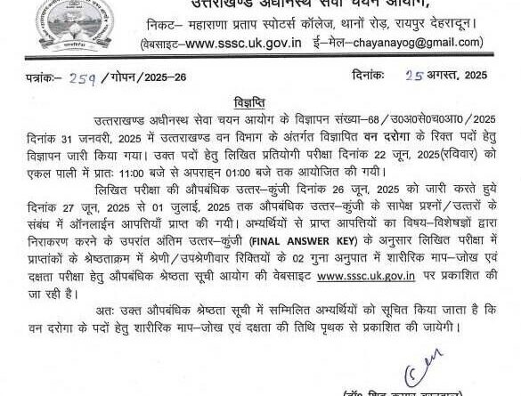 UKSSSC: उत्तराखण्ड वन दरोगा लिखित परीक्षा का रिजल्ट घोषित