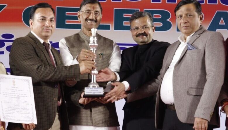 देहरादून: गणतंत्र दिवस के अवसर पर विभिन्न राज्यों की झांकियों में उत्तराखण्ड की “सांस्कृतिक विरासत एवं साहसिक खेल” झांकी को पीपुल्स चॉइस अवॉर्ड श्रेणी में तृतीय स्थान प्राप्त करने के लिये पुरस्कृत किया गया। नई दिल्ली स्थित राष्ट्रीय रंगशाला शिविर में केंद्रीय रक्षा राज्यमंत्री संजय सेठ ने यह पुरस्कार प्रदान किया। यह पुरस्कार उत्तराखण्ड की ओर से सूचना एवं लोक सम्पर्क विभाग के महानिदेशक बंशीधर तिवारी और झांकी के टीम लीडर/संयुक्त निदेशक के.एस चौहान ने संयुक्त रूप से प्राप्त किया। मुख्यमंत्री पुष्कर सिंह धामी के निर्देशों पर “सांस्कृतिक विरासत एवं साहसिक खेल” थीम पर यह झांकी तैयार की गई थी। गणतंत्र दिवस परेड के दौरान प्रधानमंत्री नरेंद्र मोदी ने भी हाथ हिलाकर उत्तराखण्ड की झांकी का अभिवादन किया था।