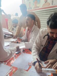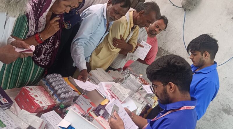 श्री महंत इन्दिरेश अस्पताल के निःशुल्क स्वास्थ्य परीक्षण शिविर में उमड़े ग्रामीण, मरीज़ों को बांटी मुफ्त दवाईयां