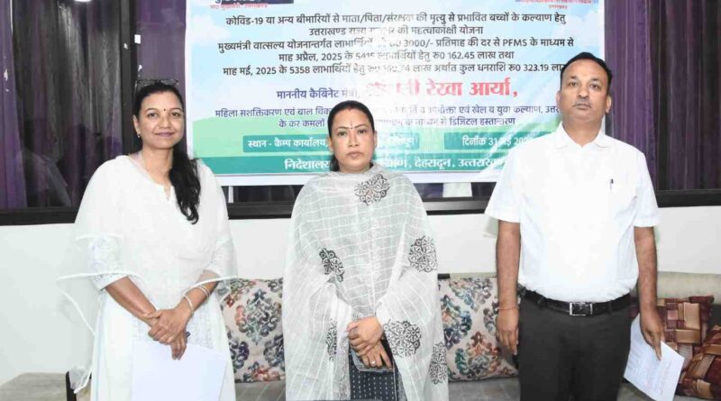 महिला सशक्तिकरण एवं बाल विकास मंत्री रेखा आर्या ने वात्सल्य योजना के तहत 3 करोड़ 23 लाख की धनराशि लाभार्थियों के खातों में की ट्रांसफर